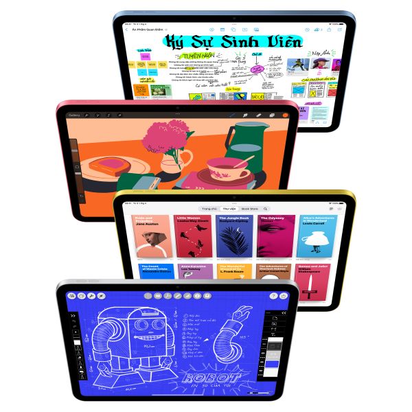 Màn hình 10.9 inch Liquid Retina hiển thị màu sắc chính xác, góc nhìn rộng. Hỗ trợ Apple Pencil USB-C, Stage Manager, bộ nhớ 256GB rộng rãi. Trải nghiệm xem phim, đọc sách và ghi chú trên iPad cực kỳ thoải mái.